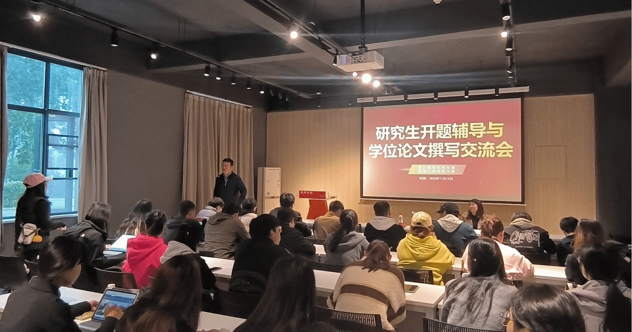 A100报告厅成功举办了“研究生开题辅导与学位论文撰写交流会”主题党日活动。活动由城乡规划系党支部书记于洋教授主持。