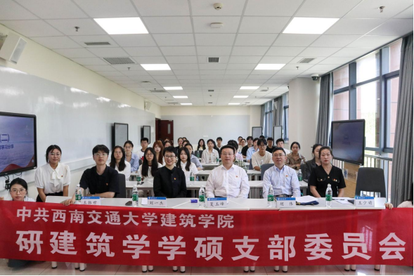 党委书记胡伟,党委副书记、纪委书记刘一杰,党委组织员王少婧,研建筑学学硕党支部指导老师王振世一起参加活动。活动在犀浦校区X30305教室举办,由研建筑学学硕党支部书记曲学敏同志主持。