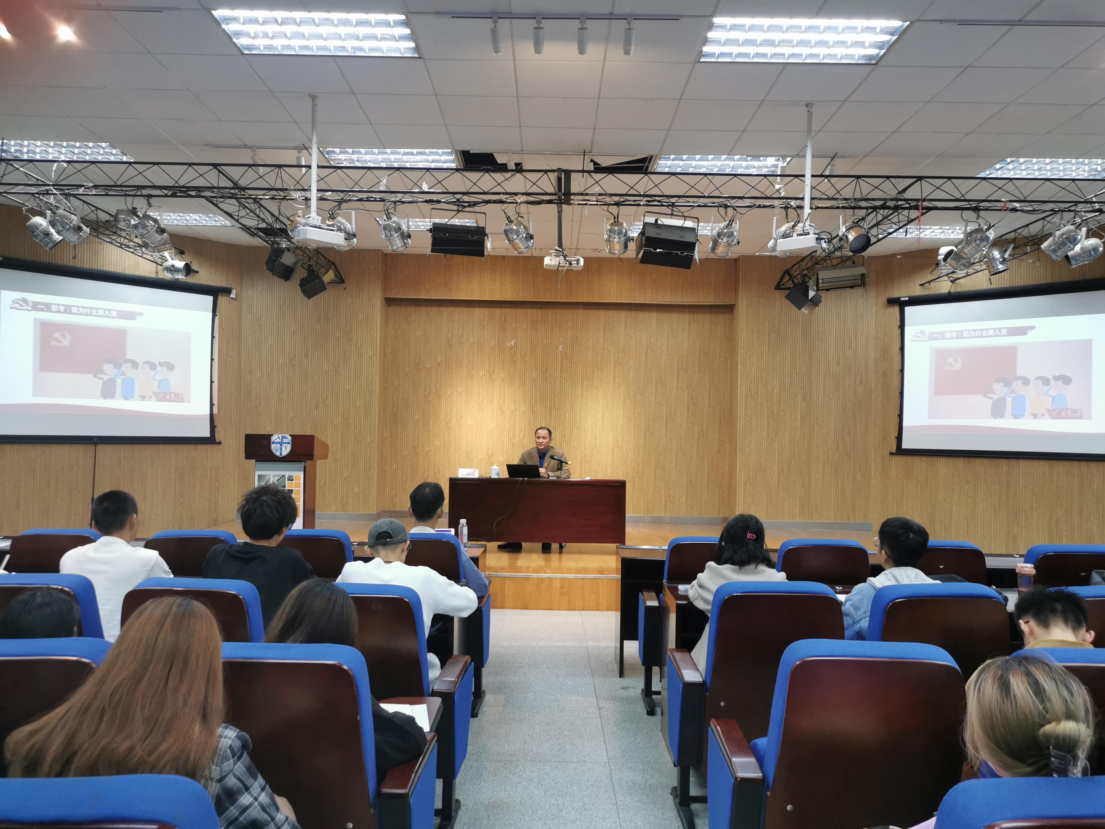 2021年10月14日14时,建筑与设计学院分党校2021年下半年入党积极分子培训党课在建筑与设计学院A300报告厅举办,全体入党积极分子参加了此次培训。学院党委书记吴晓雄同志担任主讲人。