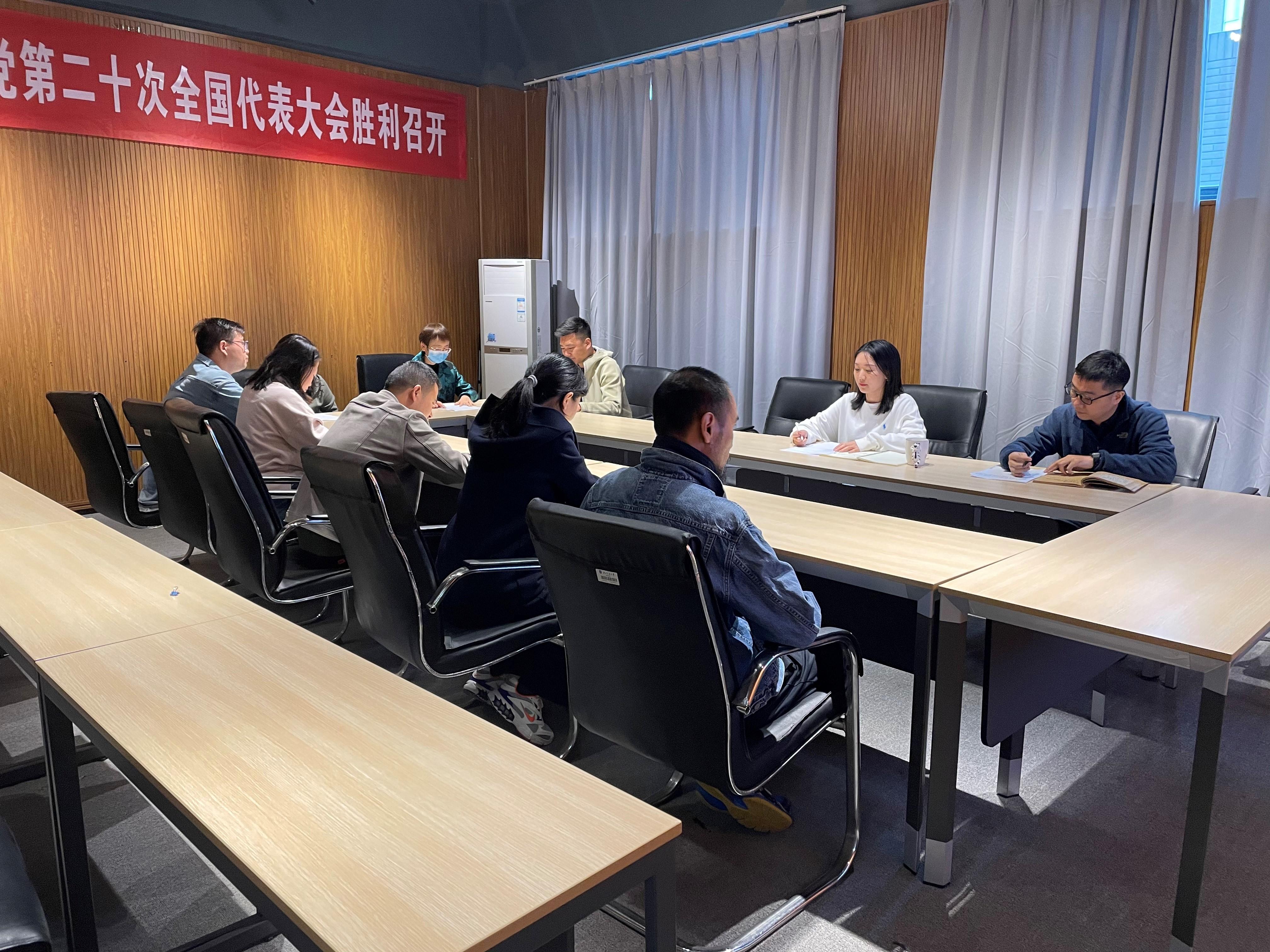 首先,党支部书记曾宁莎老师带领全体党员以及行政人员认真学习二十大报告原文,支部党员以及入党积极分子等同志分别结合实际分享了个人认识和体会。曾宁莎老师谈到习近平总书记代表第十九届中央委员会向党的二十大所作的报告站高谋远、气势恢宏、博大精深,进一步指明了党和国家事业的前进方向,是我们党团结带领全国各族人民在新时代新征程坚持和发展中国特色社会主义的政治宣言和行动纲领。党的二十大已经胜利闭幕,学习宣传贯彻党的二十大精神是当前和今后一个时期全党全国的首要政治任务。作为党支部书记,要引导全体行政老师们原原本本学习研读党的二十大报告和党章,认真领悟党的二十大提出的新思想新论断。二十大报告中提到要坚持教育优先发展,加快建设教育强国,全面提高人才培养质量的要点。作为高校工作者,更要坚持以立德树人为根本任务,在新时代新征程中展现新担当新作为。学院党委专职组织员、支部党员方翰老师谈到,通过集中观看党的二十大开幕会,增加了自豪感和使命感。报告中总结了过去五年的工作,也提到过去十年经历了对党和人民事业具有重大现实意义和深远历史意义的三件大事:一是迎来中国共产党成立一百周年,二是中国特色社会主义进入新时代 ,三是完成脱贫攻坚、全面建成小康社会的历史任务,实现第一个百年奋斗目标。作为高校专职组织员,要继续全面贯彻习近平新时代中国特色社会主义思想,深刻领悟“两个确立”的决定性意义,增强“四个意识”,坚定“四个自信”,做到“两个维护”,深刻理解党的二十大对全面建设社会主义现代化国家作出的战略部署,切实把思想和行动统一到党中央精神上来。入党积极分子邓军老师谈到,党的二十大令人振奋、催人奋进,出于这个伟大变革的时代,一定要脚踏实地立足于本职岗位,认真做好本职工作,并在工作中磨炼自己的政治思想,不断向党组织靠拢,听党话,跟党走。