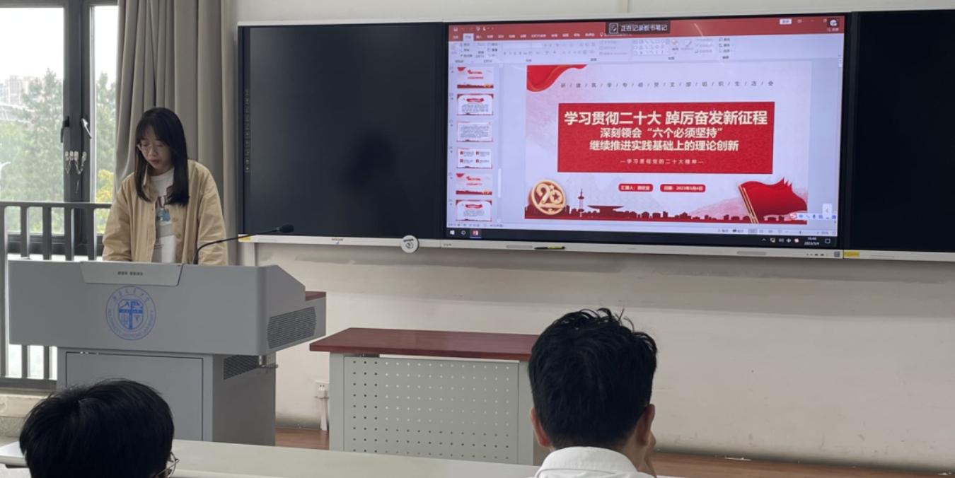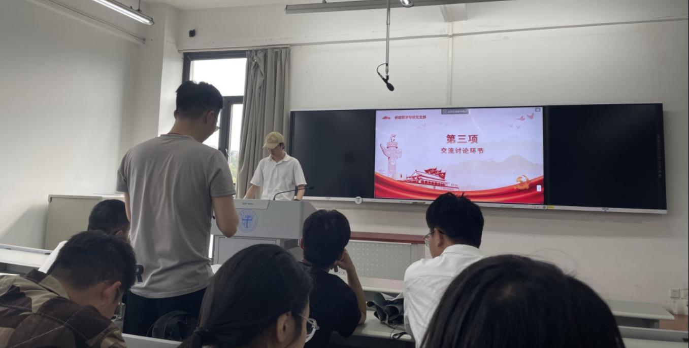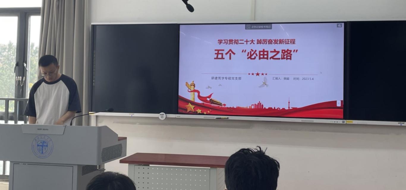 研建筑学专硕党支部深入开展学习贯彻习近平新时代中国特色社会主义思想主题教育。本次主题教育的具体内容分为学习习近平总书记《在学习贯彻习近平新时代中国特色社会主义思想主题教育工作会议上的讲话》、二十大知识分享、以及支部交流学习体会三项主要内容。支部党员和积极分子参加了本次会议,本次会议由党支部书记黄越同志主持。