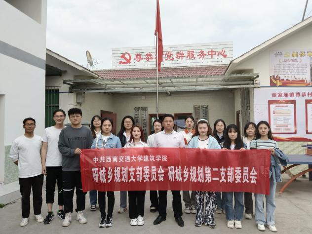 研城乡规划党支部和研城乡规划第二党支部开展了“凝聚规划力量 共绘振兴蓝图”——尊恭村乡村振兴调研活动。研城乡规划党支部和研城乡规划第二党支部学生代表、成都董家梗镇尊恭村党总支书记袁世超、驻村选调生李渊、村主任助理吉可尼都等人参与了此次调研活动。